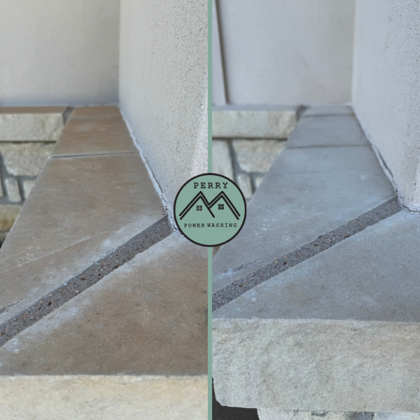 This project as you can see also had some red dirt on the stone ledge all the way around the home. When it comes to red dirt and stone in Abilene, they do not mix. The red clay we have tends to soak into stone causing the stone to eventually have a red hue. This happens because stone is more porous, meaning it has more room in which the red dirt can really get into grooves and cracks causing the stone to have a red hue. Here at Perry Power Washing, we have specific chemicals we use for red dirt so that we can truly get your home or concrete back to its original color. These chemicals are completely safe to plants and animals that might be around your home, so you do not have to worry about toxic chemicals harming your plants or animals.